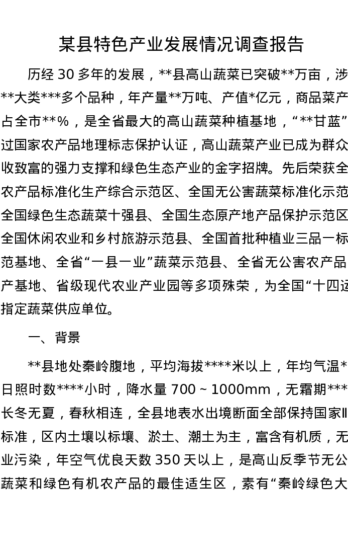 某县特色产业发展情况调查报告