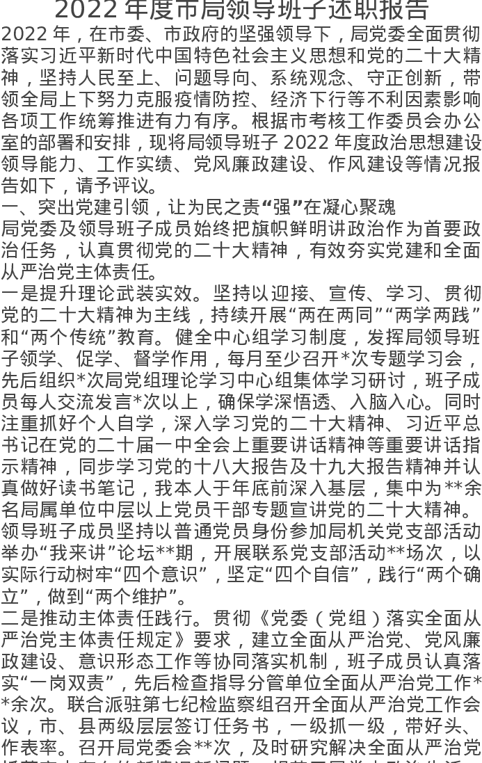 2022年度市局领导班子述职报告