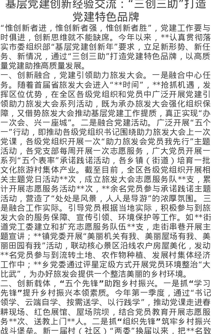 基层党建创新经验交流:“三创三助”打造党建特色品牌