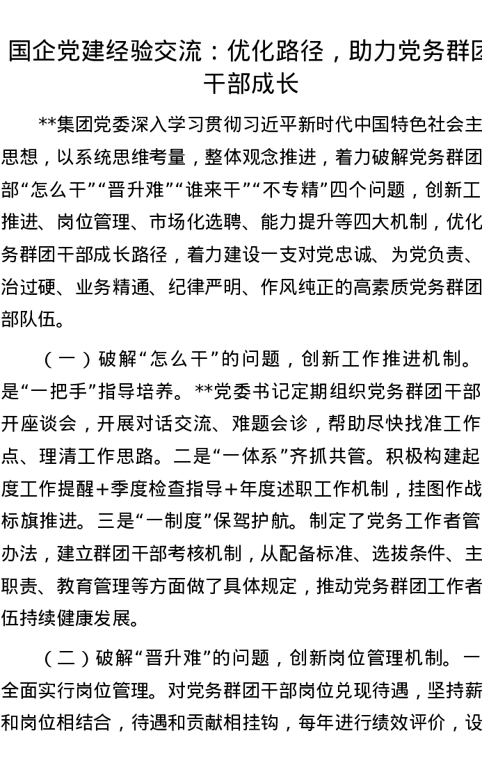 国企党建经验交流:优化路径,助力党务群团干部成长