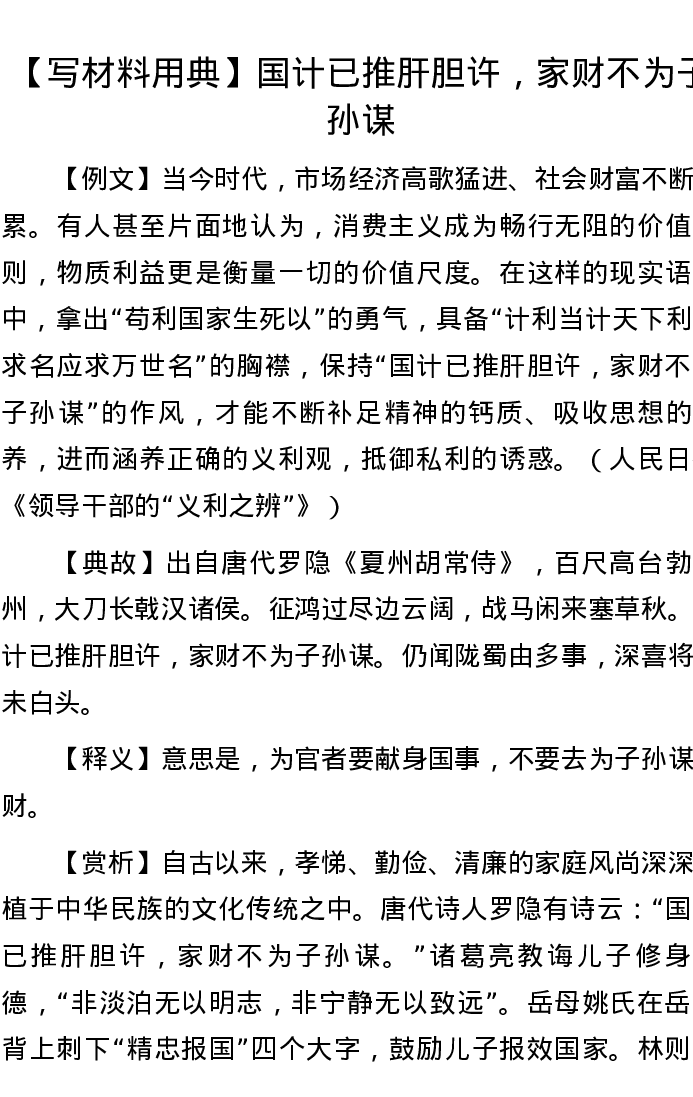 【写材料用典】国计已推肝胆许,家财不为子孙谋