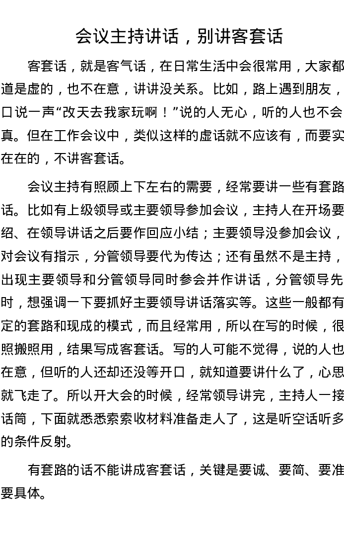 会议主持讲话,别讲客套话