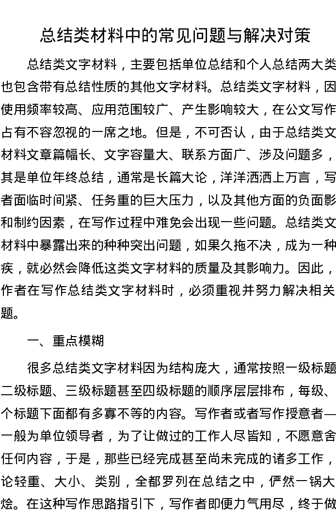 总结类材料中的常见问题与解决对策