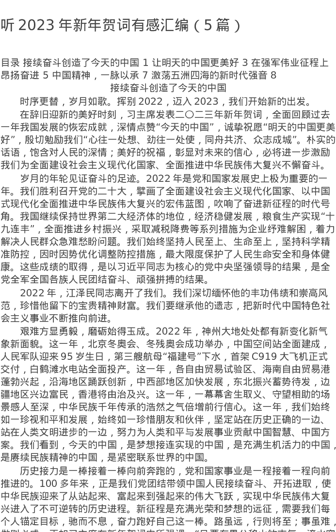 听2023年新年贺词有感汇编(5篇)