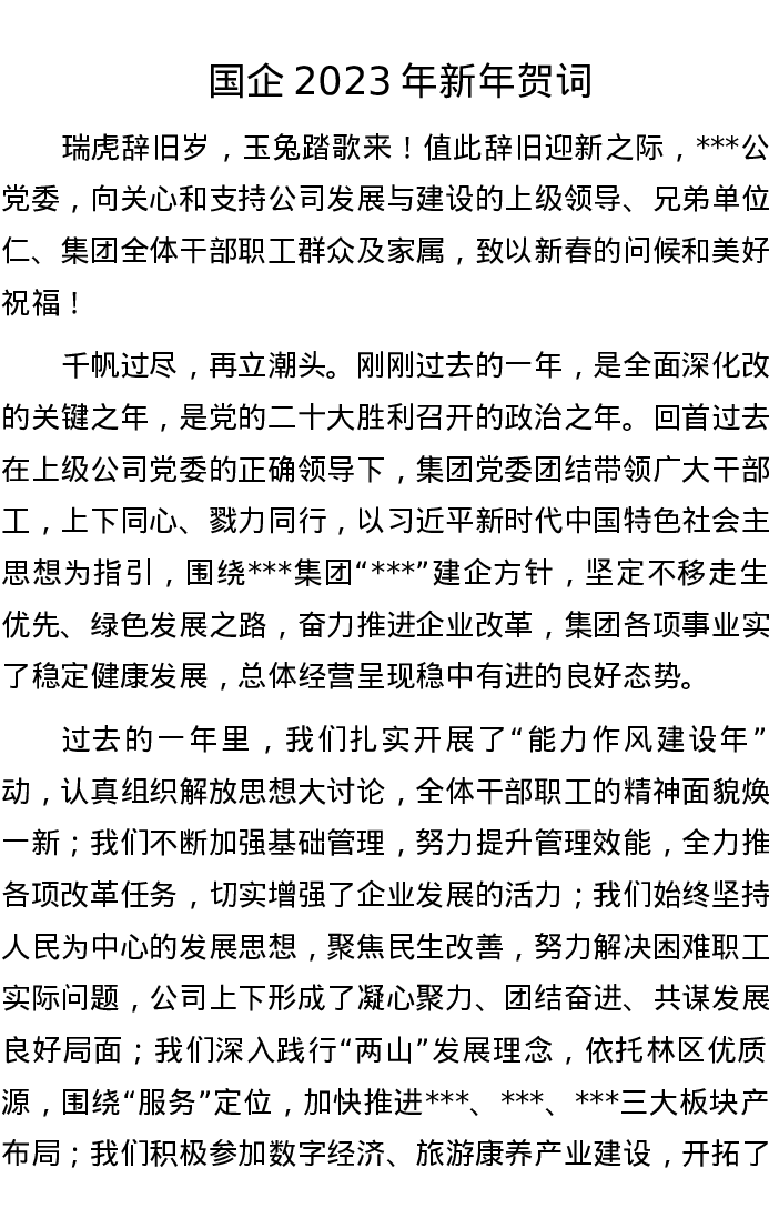 国企2023年新年贺词