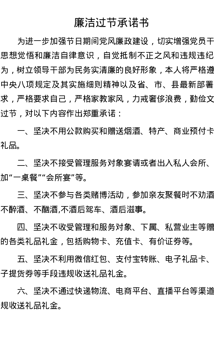 廉洁过节承诺书