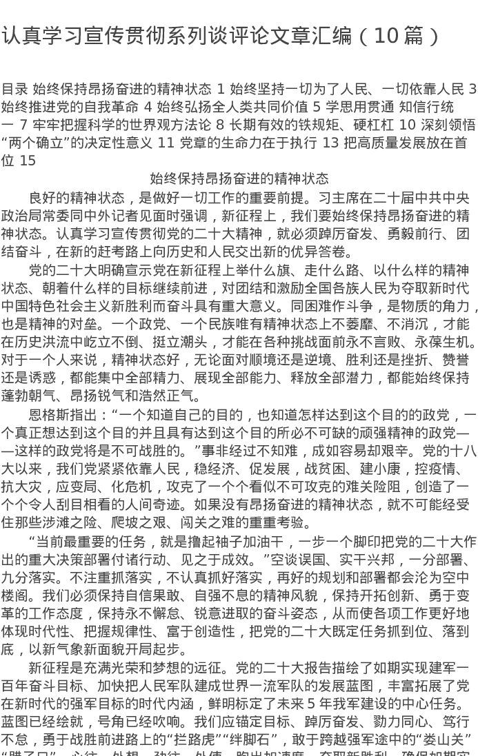 认真学习宣传贯彻系列谈评论文章汇编(10篇)