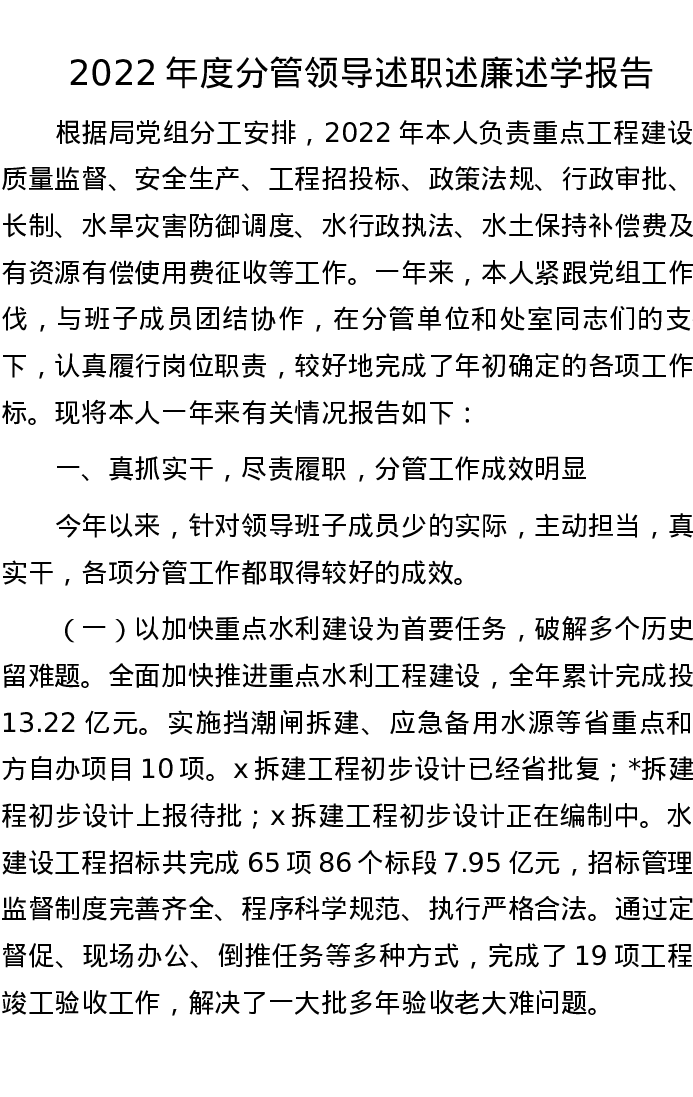 2022年度分管领导述职述廉述学报告
