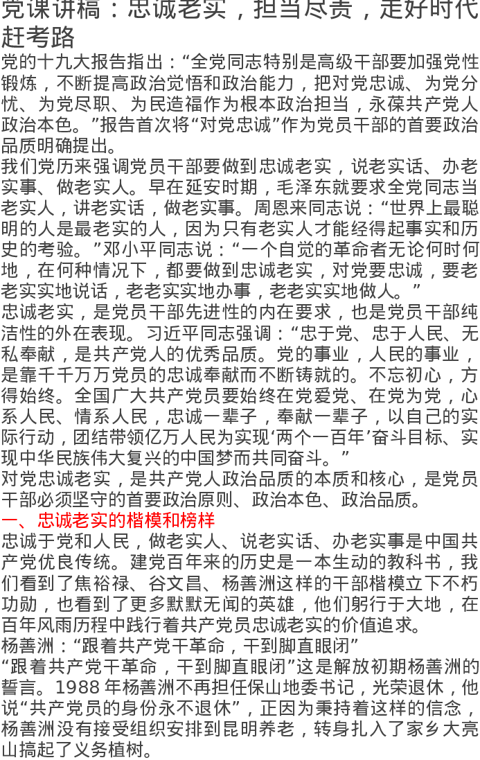 党课讲稿:忠诚老实,担当尽责,走好时代赶考路