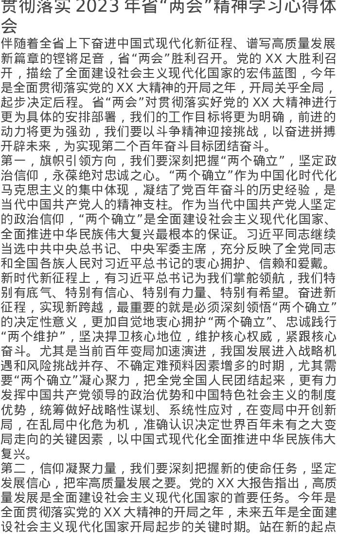 贯彻落实2023年省“两会”精神学习心得体会
