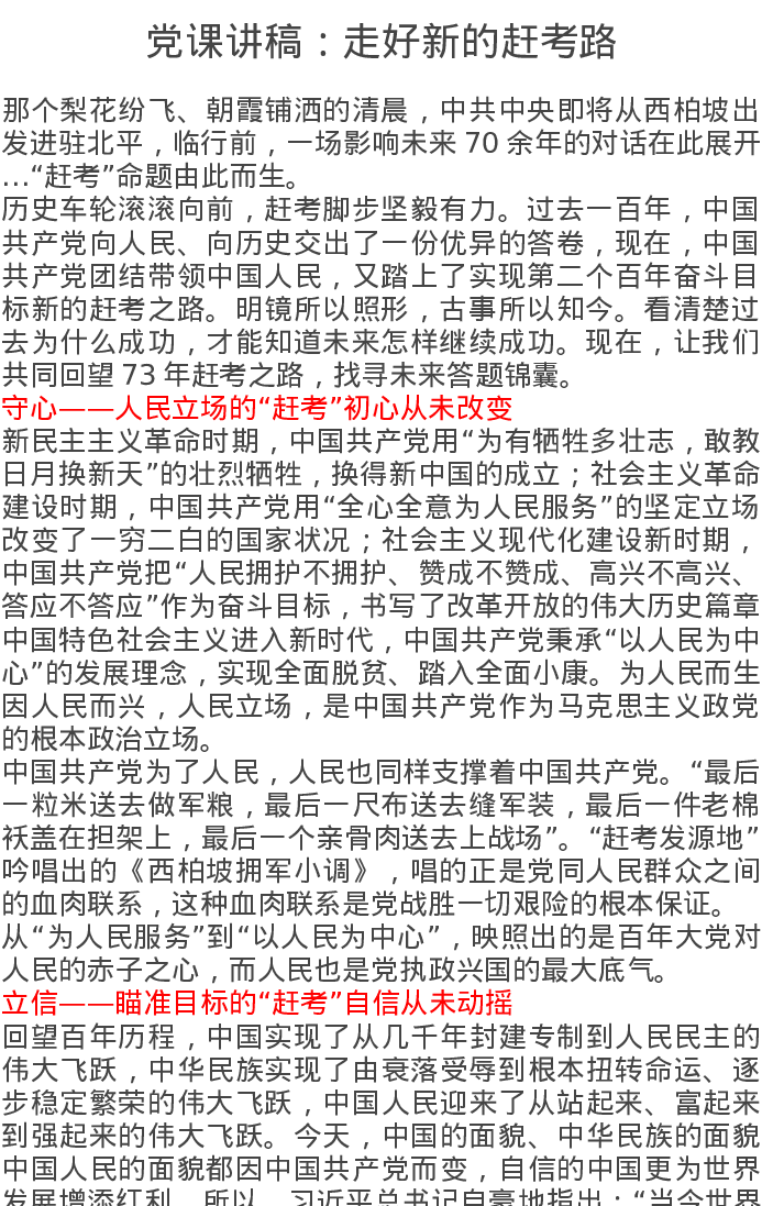党课讲稿:走好新的赶考路