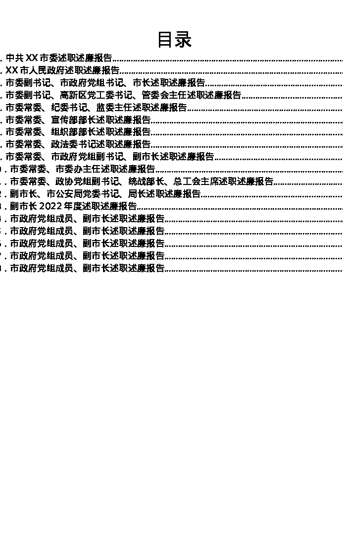 汇编:2022年度XX市市委、市政府领导班子及班子成员述职述廉报告18篇