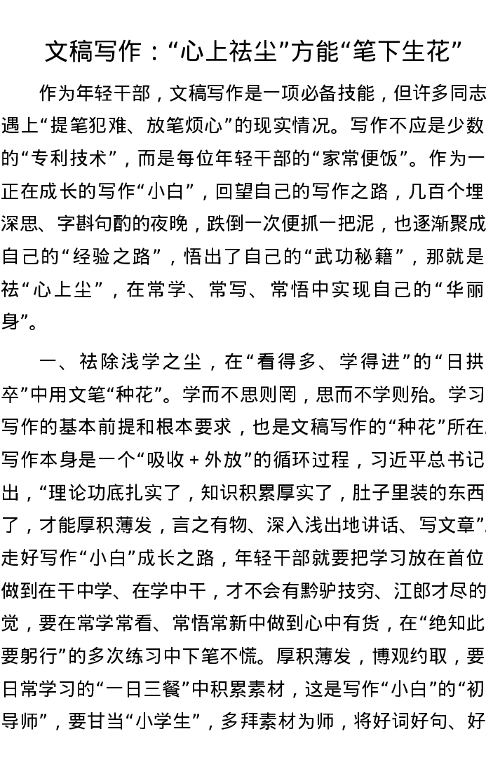 文稿写作:“心上祛尘”方能“笔下生花”