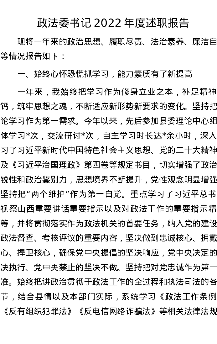 政法委书记2022年度述职报告