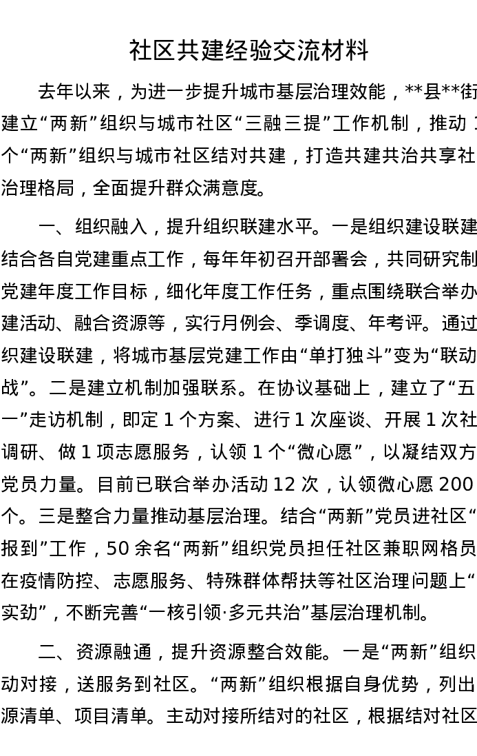 社区共建经验交流材料
