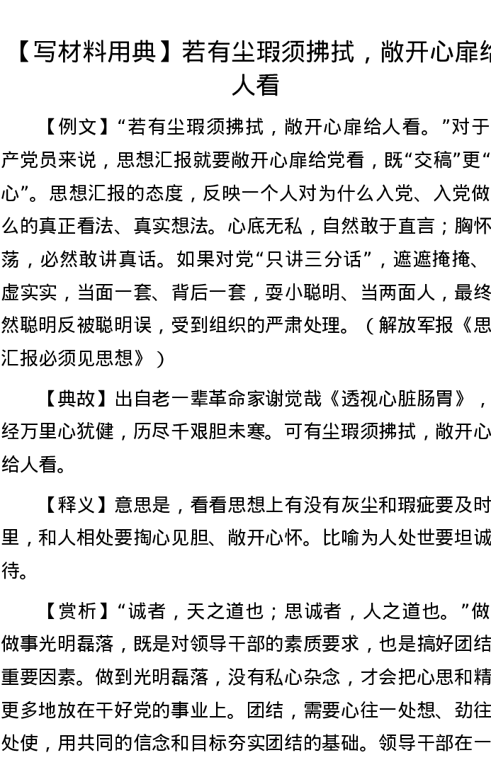 【写材料用典】若有尘瑕须拂拭,敞开心扉给人看
