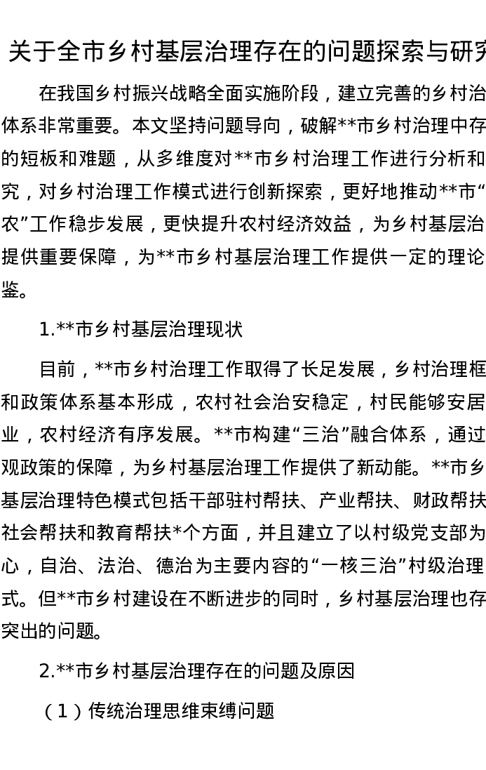 关于全市乡村基层治理存在的问题探索与研究
