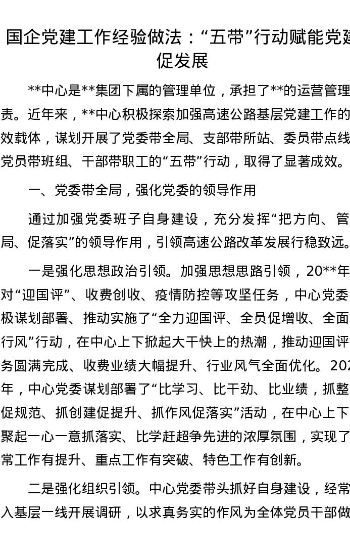 国企党建工作经验做法:“五带”行动赋能党建促发展