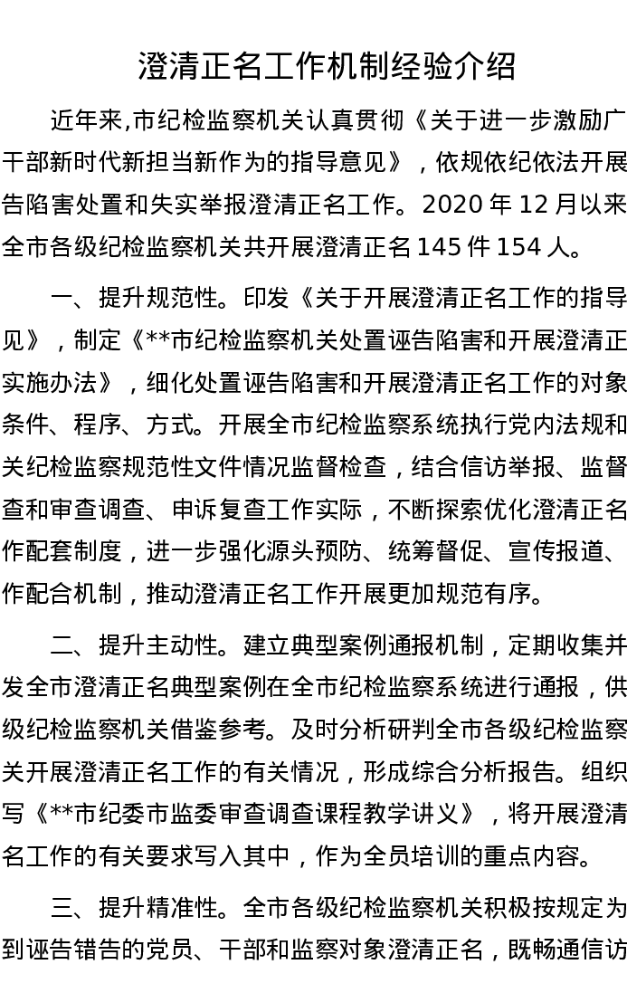 澄清正名工作机制经验介绍