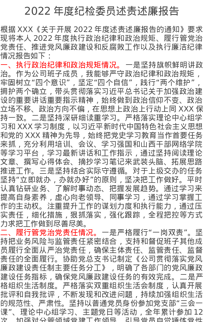 2022年度纪检委员述责述廉报告