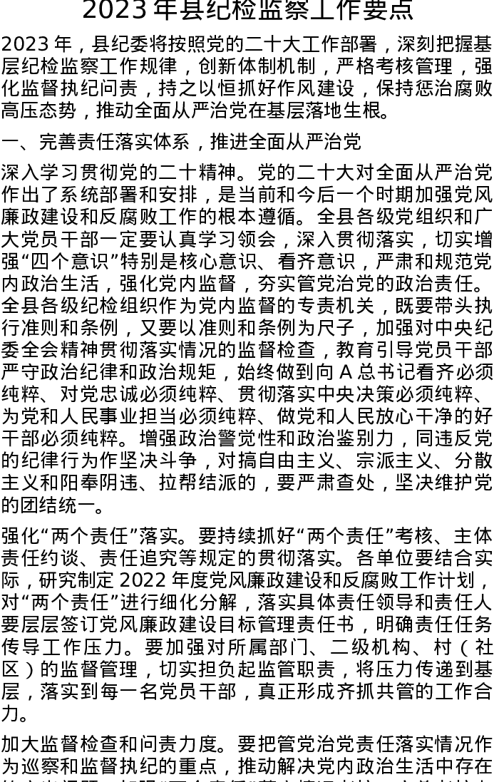 2023年县纪检监察工作要点