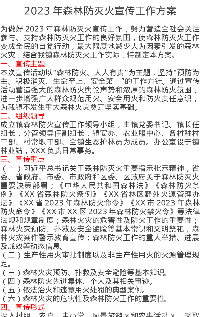 2023年森林防灭火宣传工作方案