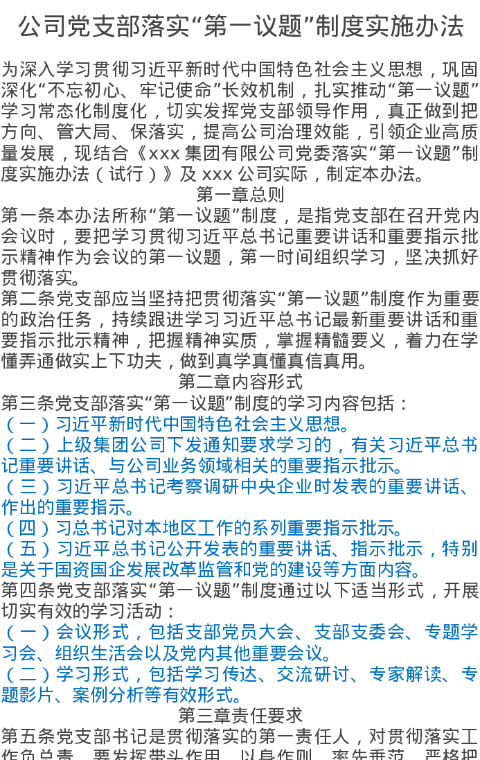 公司党支部落实“第一议题”制度实施办法