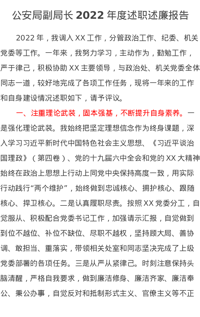 公安局副局长2022年度述职述廉报告