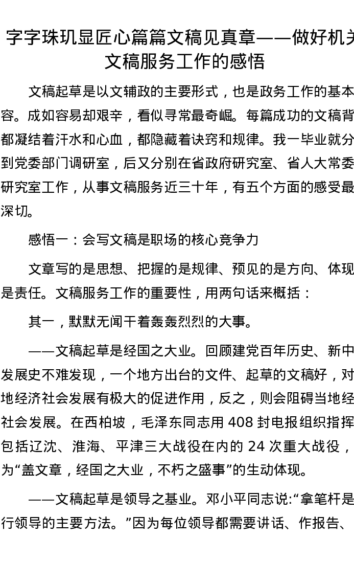 字字珠玑显匠心 篇篇文稿见真章——做好机关文稿服务工作的感悟