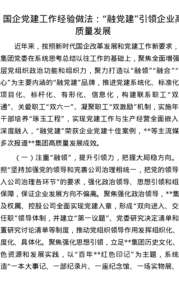 国企党建工作经验做法:“融党建”引领企业高质量发展