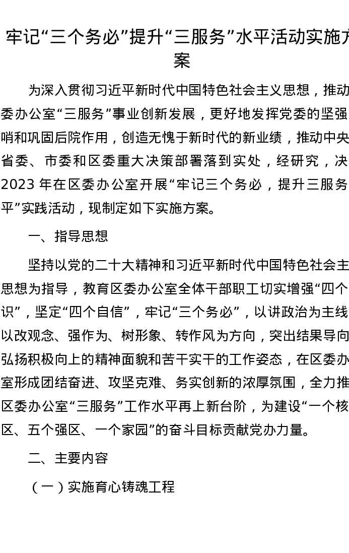 牢记“三个务必”提升“三服务”水平活动实施方案