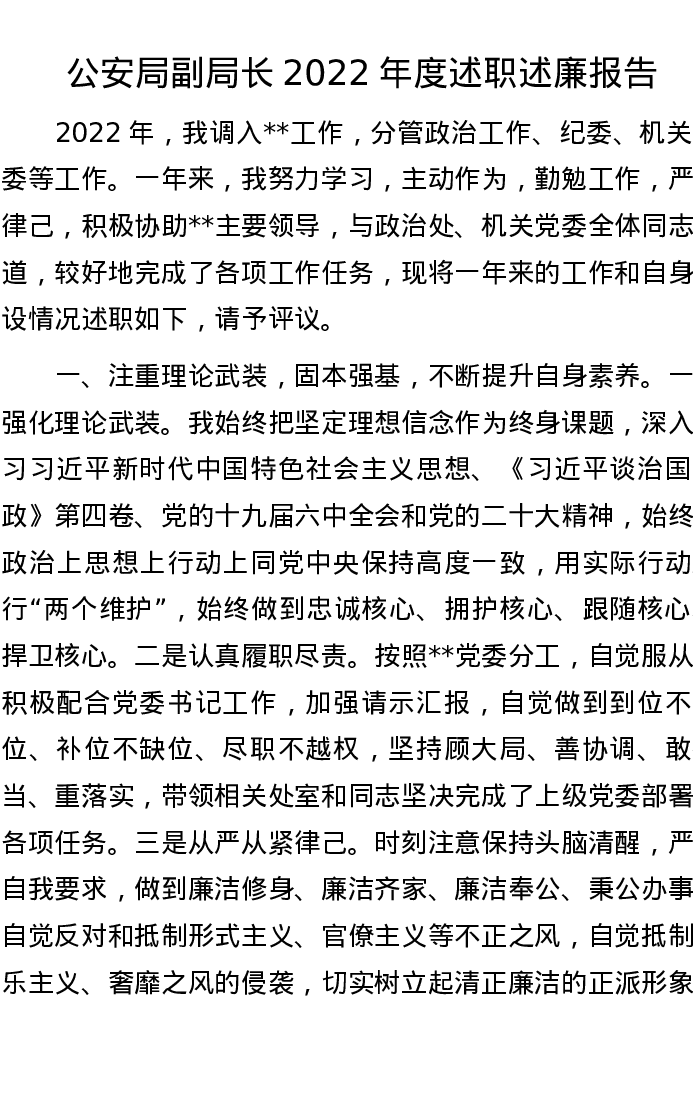 公安局副局长2022年度述职述廉报告