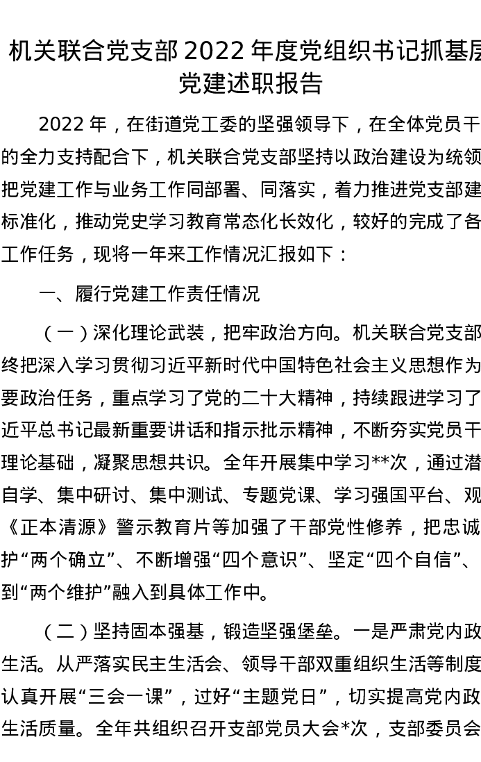 机关联合党支部2022年度党组织书记抓基层党建述职报告