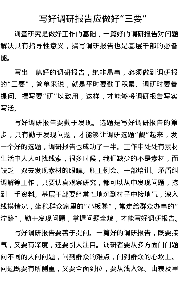 写好调研报告应做好“三要”