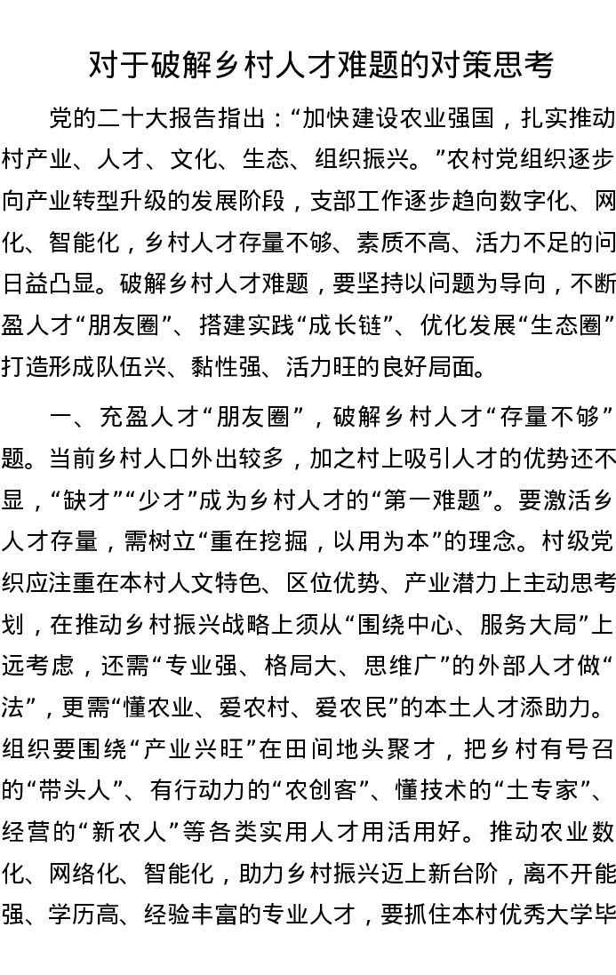 对于破解乡村人才难题的对策思考