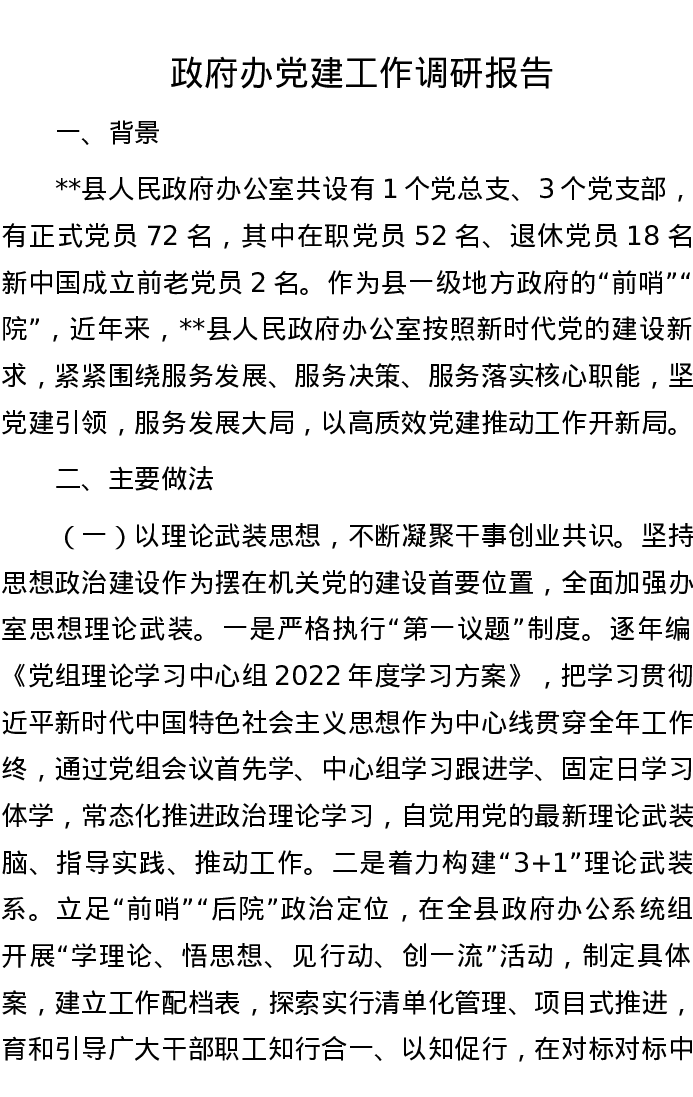 政府办党建工作调研报告