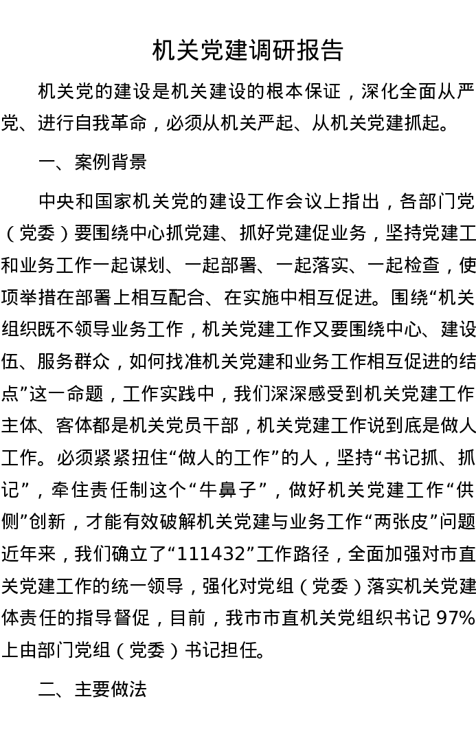 机关党建调研报告