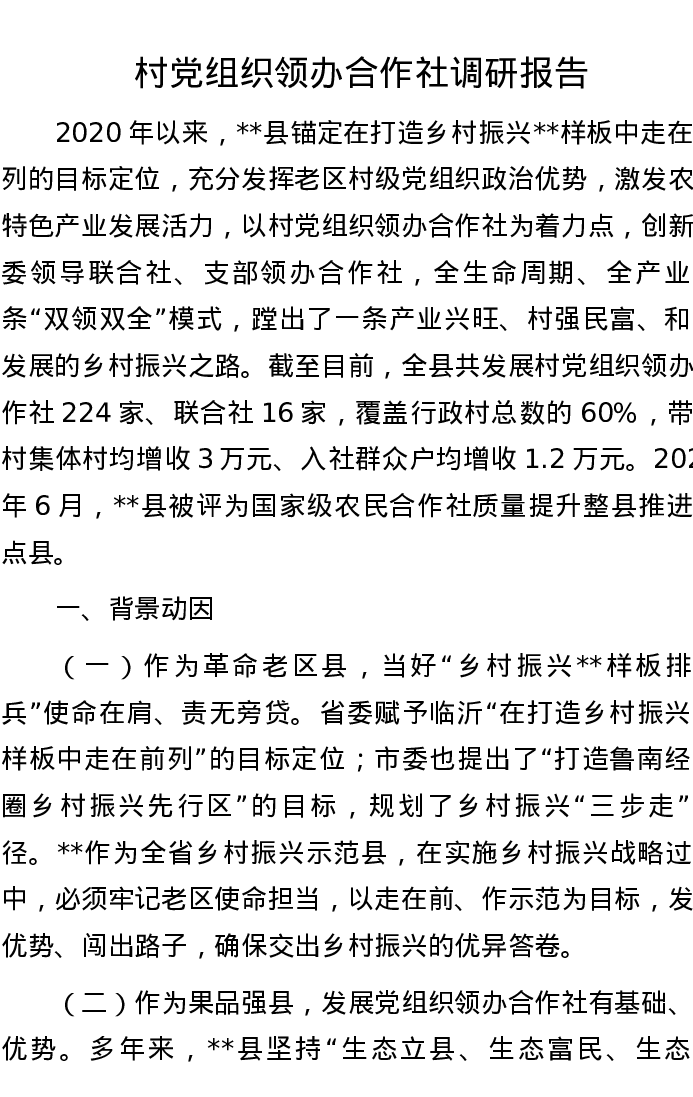 村党组织领办合作社调研报告