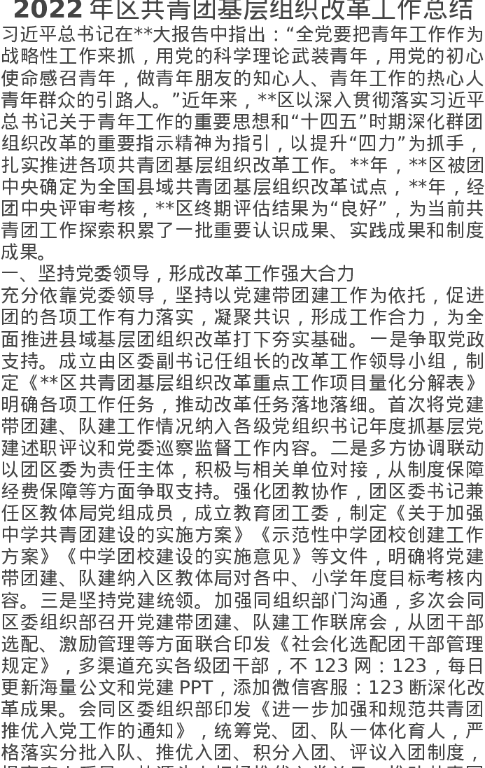 2022年区共青团基层组织改革工作总结