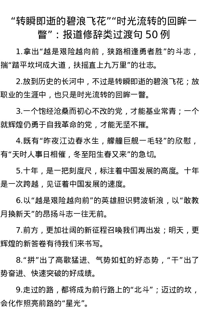 “转瞬即逝的碧浪飞花”“时光流转的回眸一瞥”:报道修辞类过渡句50例