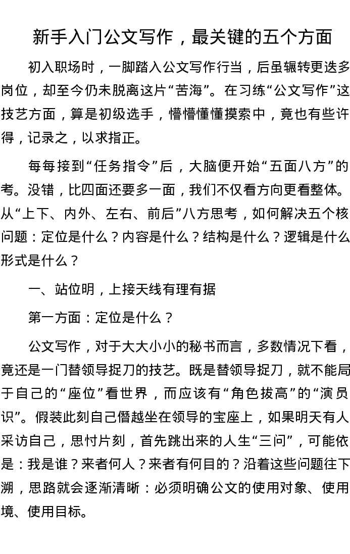 新手入门公文写作,最关键的五个方面
