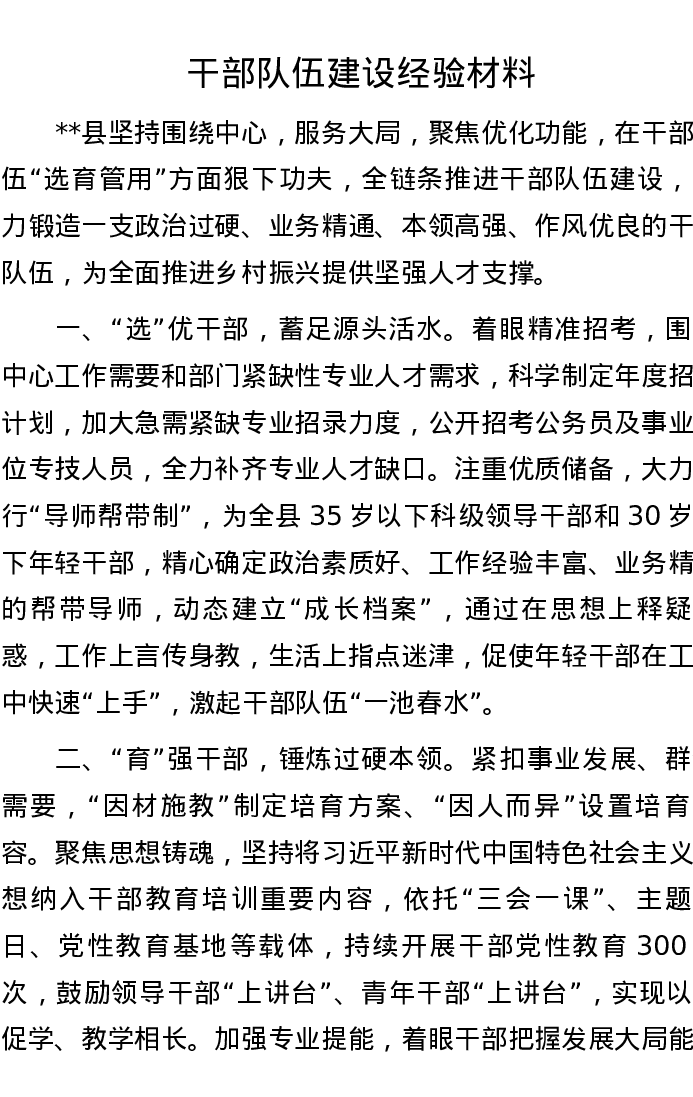 干部队伍建设经验材料