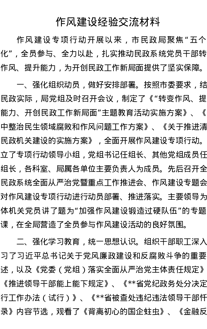 作风建设经验交流材料