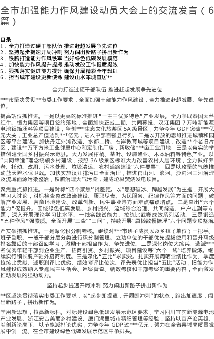 汇编:全市加强能力作风建设动员大会上的交流发言6篇