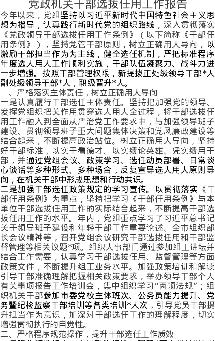 党政机关干部选拔任用工作报告