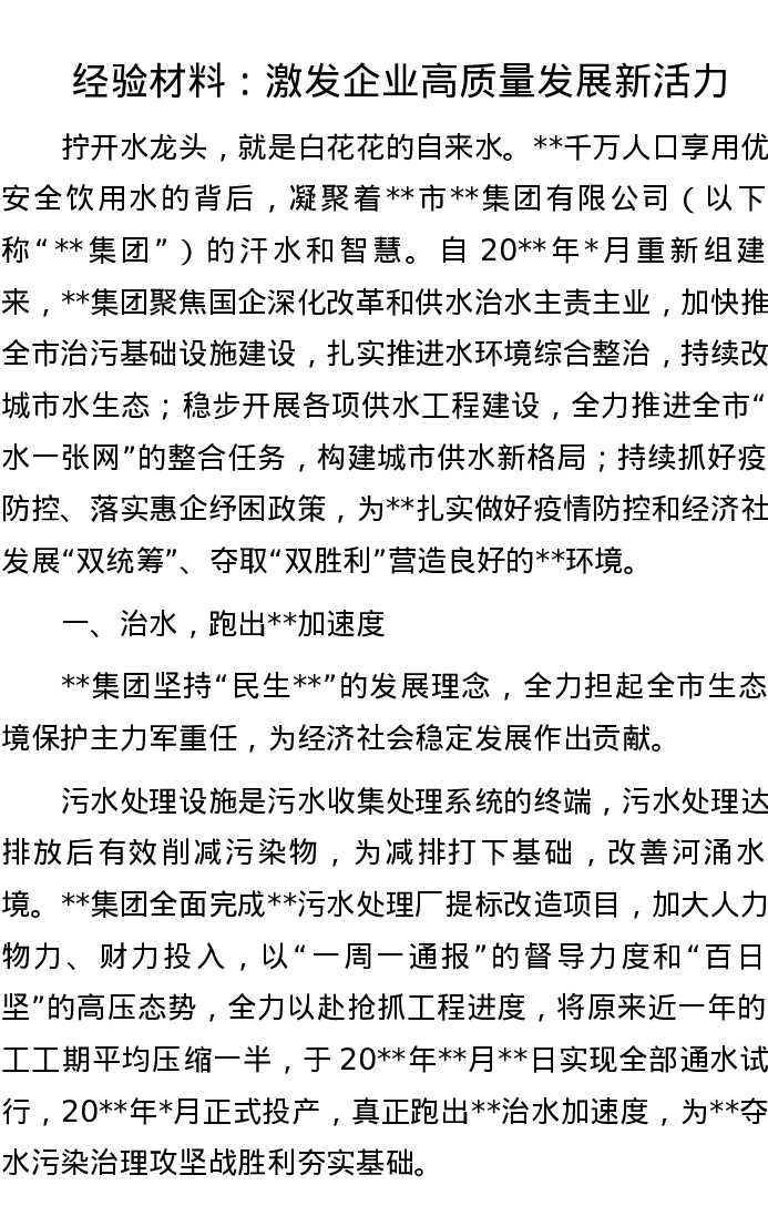 经验材料:激发企业高质量发展新活力