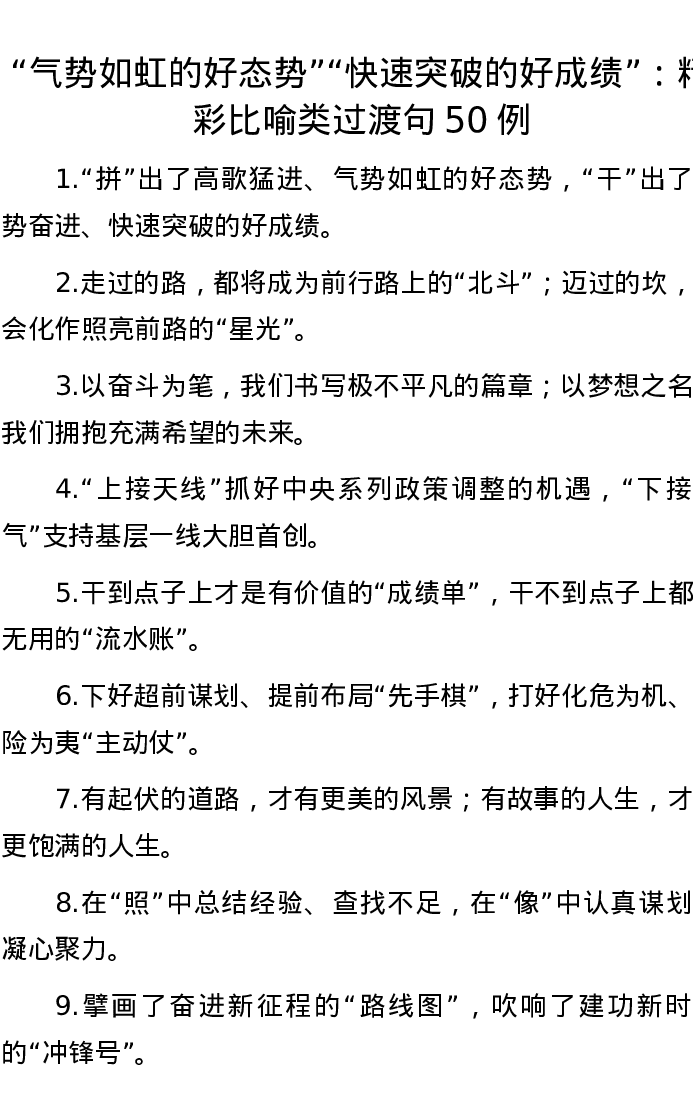 “气势如虹的好态势”“快速突破的好成绩”:精彩比喻类过渡句50例