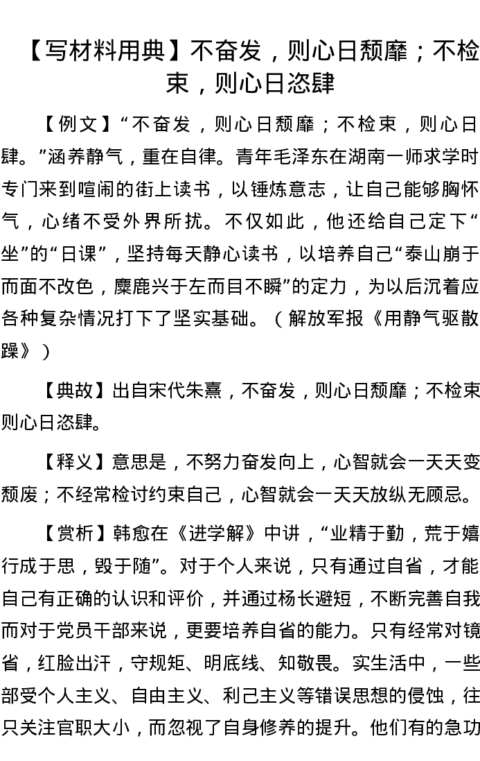 【写材料用典】不奋发,则心日颓靡;不检束,则心日恣肆