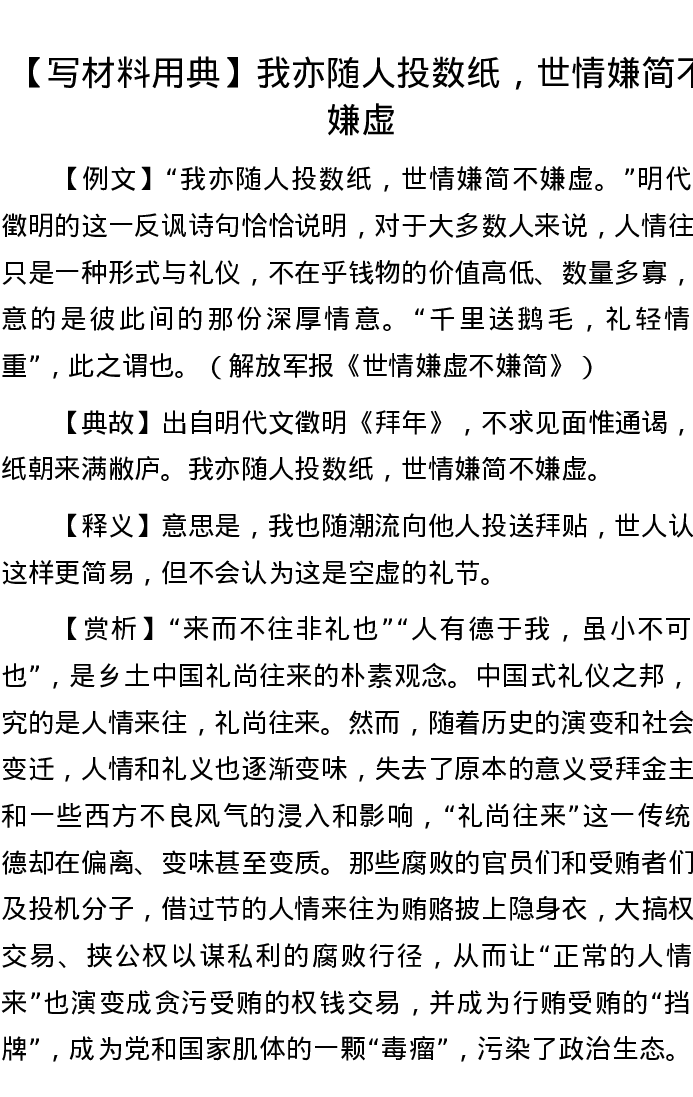【写材料用典】我亦随人投数纸,世情嫌简不嫌虚