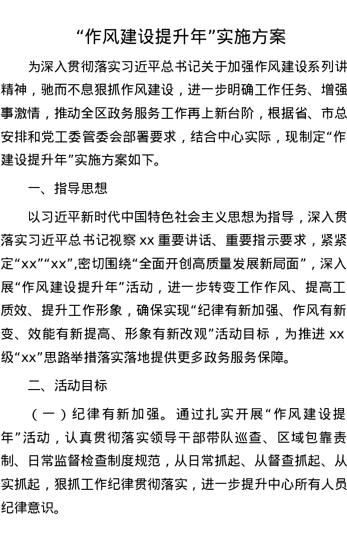 “作风建设提升年”实施方案